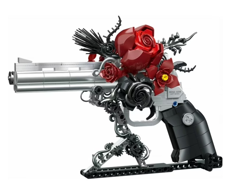 Romantic Revolver Building Blocks with Red Roses
